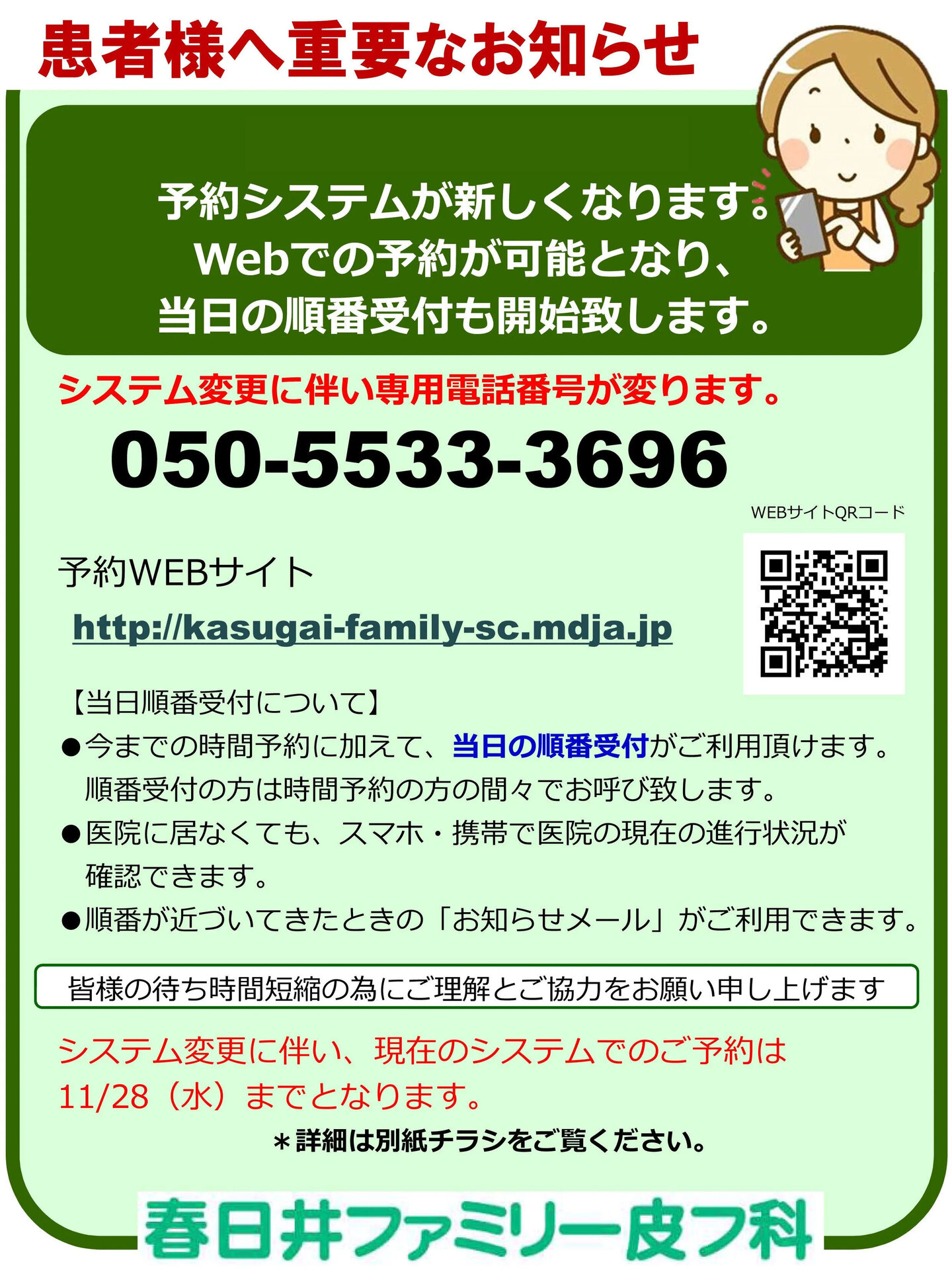 受診前日20:00以降に予約専用ダイヤル 050-5533-3696 へおかけ下さい。(15分刻みでの時間指定での予約になります。)音声ガイダンスに従って頂ければ予約が可能です。